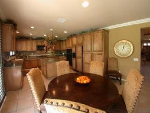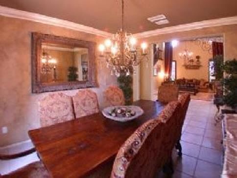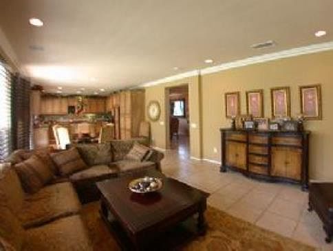 Gorgeous & elegant home shows picture perfect. Warm & inviting custom paints throughout. No detail has been overlooked in this house. The Living room features vaulted ceilings, custom window coverings & tile floors. Beautiful wrought iron & dark stained wood banister. Warm intimate formal dining room. Lovely open kitchen with gorgeous granite counters & backsplash w/ decorative inlay tile, custom finish on cabinets, center island, upgraded appliances. Family room with gas fireplace & entertainment niche & custom mantel. Plantation shutters & crown moldings throughout. 5 bedrooms & 4 baths with over 3000 sq. ft. of living space. Extra large downstairs bedroom is perfect for bonus / game room. Upstairs master suite features crown molding, beautiful custom silk window coverings, 2 finished walk-in closets, jetted tub, his & hers vanities, tile counters w/ decorative inlay. Additional bedrooms have custom built-ins and finished closets. Overhead sound system wired throughout the home. Lovely open landscaped back yard with covered stamped concrete patio and colorful roses and flowers.