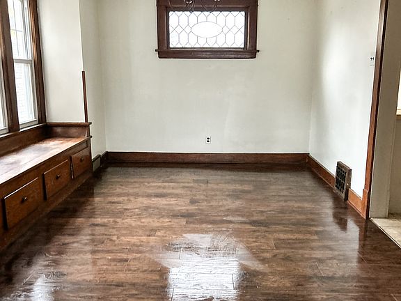 Charming craftsman home with detached garage and lots of character. Central A/C and gas furnace. Carpeted front living room is loaded with original features including awesome statement fireplace, box bay window with seat, bookcases, and coat closet. Formal dining room has another bay window seat with storage and vintage chandelier. Nice sized kitchen with plenty of cabinets, ceramic tile floor, and breakfast nook. Fridge and gas oven range included. Upstairs are 2 bright bedrooms with 3 closets each. Hall bath has combo tub/shower. Sink, toilet, and laundry hookups in the unfinished basement. Rear mudroom. Dual pane windows. Small covered patio and mostly fenced back yard. Large evergreen and deciduous trees. 1-car detached garage and paved driveway. Applicant must have minimum monthly income of $2,500. Owner pays Level 1 trash. Tenant responsible for all other utilities. Partially refundable security deposit. Up to 2 pets allowed with $50 monthly fee per pet. Please note, we DO NOT advertise on Craigslist.