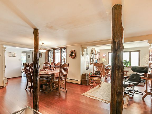 Custom Lake Home Set A Top Beautifully Landscaped Double Lot, Boasting Gorgeous Panoramic Lake & Sunset Views. Thus, appropriately named "OVERLOOK." Pride of Ownership. Perfect retreat for relaxation. Lake Lifestyle at its best. Entertain on deck & patio with 1 minute walk to beach, boating, ice skating & fun. Authentic detailing brings a uniqueness to this home like no other. Hardwood flooring, beamed ceilings, salvaged tree trunk columns on the first floor; integrate the open floor plan with a sense of nature. The eat-in-kitchen offers a specially crafted breakfast bar, built-ins, slider to patio & grand views. Find upstairs a fabulous family room w/cathedral & beamed ceiling, wood burning fireplace & balcony. Two super-sized bedrooms + 3rd bedroom or office. Walking distance to train, bus and town. Hurry!