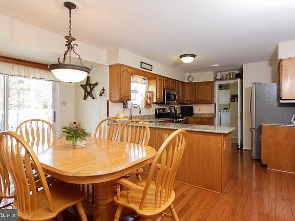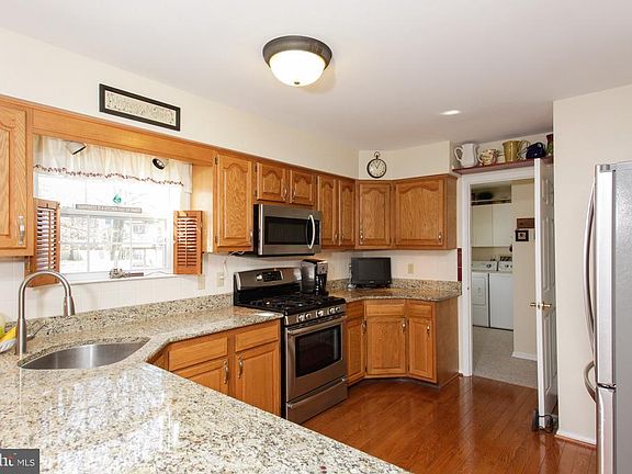 Welcome to this beautifully maintained center hall colonial in Kings Gate! Located on a quiet cul de sac, this home offers an expansive yard with updated and upgraded features throughout. Entering the center hall foyer, hard wood floors lead you through a great first floor that starts with a formal living room/sitting room and dining room with chair rail. Heading to the back of the home you'll find great open living space that includes a family room, large breakfast area with sliders to a back deck, a well positioned 1/2 bath between dining room and kitchen, and a nicely updated kitchen with stainless steel appliances, granite countertops with under-mount sink, and loads of cabinetry. Off the kitchen you'll find an expanded mudroom/laundry room that offers back door access to the rear deck and yard, a large coat closet and indoor access to the oversized 2 car attached garage (includes space for 2 cars, storage/workshop area, and pull down stairs to attic storage). The back of the home offers incredible entertaining area with a deck the runs the full length of the home and includes a covered porch area with hot tub, pavers to a bbq area, a separate storage shed and a great level yard that widens before reaching the back of the lot. Heading upstairs you'll find a master suite with vaulted ceiling, 2 large walk-in closets and a full bath. Further, you'll find and updated hall bath with tub, a large hall closet, pull down stairs to attic storage and 3 nice sized bedrooms offering great closet space. Back downstairs, off the breakfast area, stairs lead you to a full basement that includes a modern finished space, as well as, a generously sized storage area and an additional storage/utility space off the back. With great upgrades in systems including newer high efficiency HVAC system (90%), newer hot water heater, new roof, this home offers an incredible value you don't find in many homes of its age! Don't miss this great opportunity!