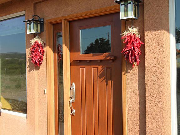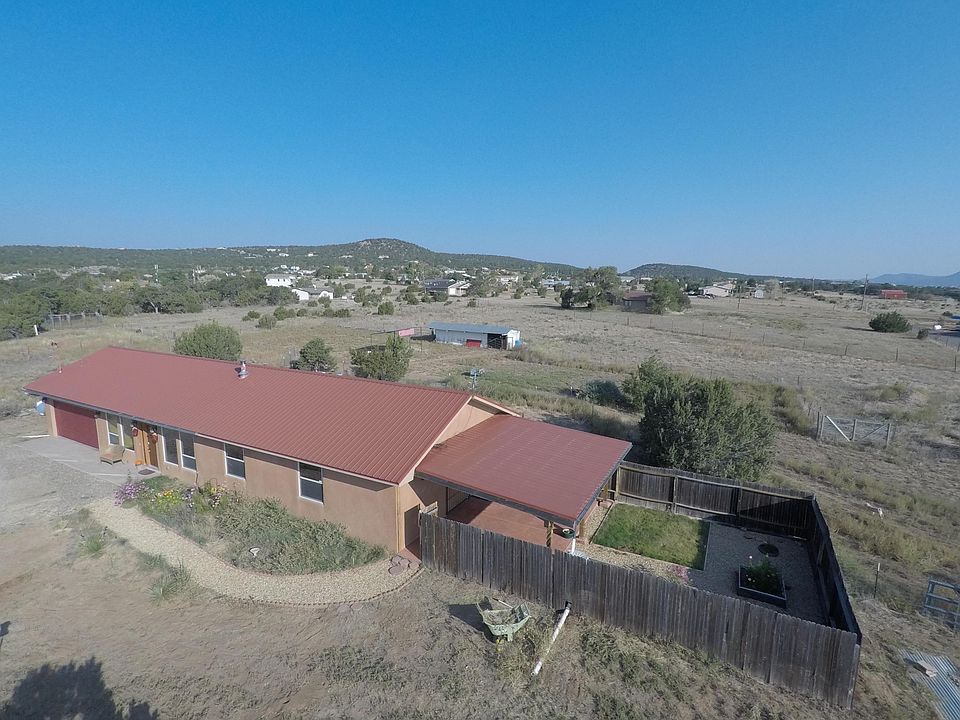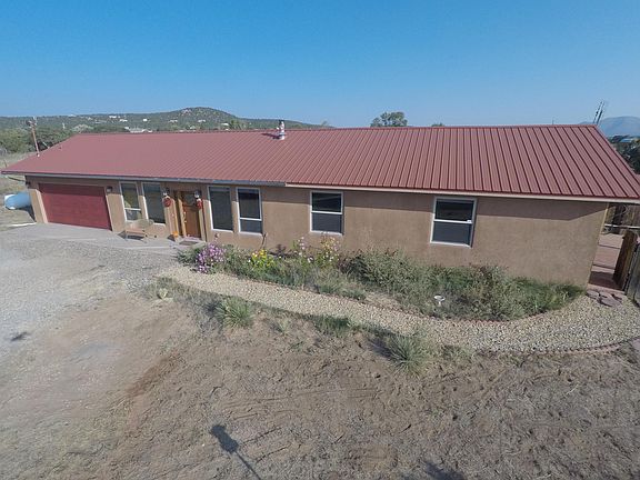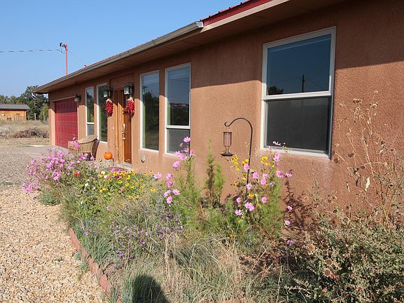 Welcome home to paradise in the Sedillo Hill area! A rare find on 2 acres, with a barn, fenced and cross fenced, and right off a paved road! You'll fall in love with this custom home boasting a master bedroom suite with front and backyard access, a covered patio off the master suite, double vanities in the master bath, solid surface counter tops throughout, custom jetted tub and shower in the guest bath, solid wood doors, open concept living room with a bar in kitchen island, stainless steel appliances, wood stove, and a passive solar design to help with utility bills, attic space above the garage, on demand hot water heater, roughed in for a hot tub. This home is easy to maintain inside and out with SW natural landscaping, rain barrels, covered patios, and wildflowers abound.