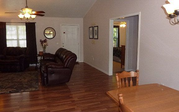 Located in McInnis Mill subdivision, this 3 BR/2BA home features new laminate wood flooring in kitchen, living room, breakfast room and hallways. A vaulted ceiling in the living room makes the room seem extra large. The split floor plan offers privacy for master bedroom. Large closets mean plenty of storage space. Neutral colors will coordiante with any decor. The private fenced backyard has a seperate dog run (can be removed or left in place) and a concrete patio. Nice landscaping completes the picture for great curb appeal! Concrete driveway with extra parking area and attached garage.