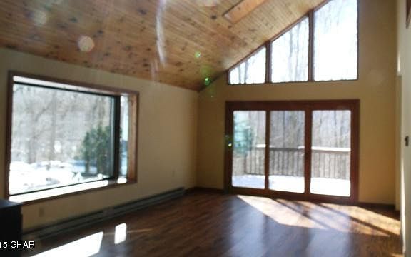 Tranquility surrounds this 4 bedroom Contemporary Home nestled in the Woods with its own Pond on 9.98 acres. Summer Seclusion, Winter views of the Mountains. Skate on the pond or ice fish in the winter, swim or fish in the summer. Memories are waiting to be made in this very beautiful contemporary home just outside of Tunkhannock Boro. Cathedral ceiling, Pellet stove, skylights, French doors