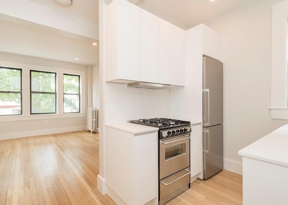 Renovated one bedroom + den that could be used as second bedroom. Hardwood floors. Quartz counter tops, stainless steel appliances, gas cooking. Heat and hot water included. Tiled bathroom with glass enclosed shower. Laundry and bike storage in the basement. Small dog OK. 1/2 month free. Available February 15th Rent Includes: Heat, Hot Water