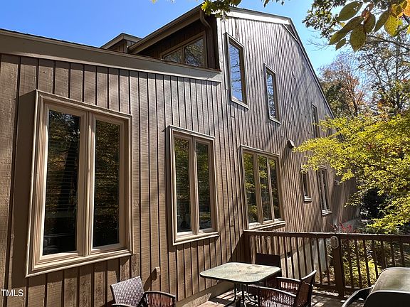 Location! Location! This airy end-unit townhome in Chapel Hill's coveted Falconbridge neighborhood offers the privacy of a single-family home with the ease of townhouse living. Nestled in a leafy community yet close to everything you love about living in the Triangle. This 3-bedroom, 2.5-bath turnkey home features a first-floor primary suite, hardwood floors, a charming sunroom, and an updated eat-in kitchen. Bask in sunlight brought in by the bright, large windows and enjoy the cozy ambiance of a private front patio for your morning coffee. Host family and friends on the expansive back deck for year round outdoor entertaining! Community amenities include a clubhouse, saltwater pool, pickle-ball courts, neighborhood sponsored events, and the serene Thompson's Lake. Minutes from I-40 with easy access to UNC, Duke, RTP, and American Tobacco Trail. Location and neighborhood: Conveniently within a 10 minute drive to Southpoint Mall, Wegmans, Whole Foods, Sprouts, Target, ALDI, and Walmart. Walking distance to Starbucks, Nantucket Grill for seafood, highly rated Mexican and Thai restaurants, and a Golds Gym. Less than a 10 minute drive to nearby recreation and entertainment such as American Tobacco Trail, the nationally rated UNC Finley Golf Club, NC Botanical Garden, restaurants Bluebird and Hawthorne & Wood (run by a Michelin star chef), nearby nature trails including Woodlake, Morgan Creek, and Mason Farm. Easy access to Route 40 and Highway 54 puts you conveniently within a 20 minute drive to RTP, UNC and Duke hospitals, the North Carolina Museum of Art, Duke Botanical Gardens, downtown Durham, Nasher Museum of Art, and RDU. Falconbridge residents have exclusive access to a beautiful walking trail encircling the neighborhood pond where they can see the wildlife that calls it home, including a heron as well as families of turtles and ducks. The clubhouse hosts a lively and diverse range of events that creates a welcoming community for residents of all ages. Townhome owner dues include access to pickleball courts and the saltwater swimming pool. The clubhouse includes changing rooms for getting into/out of your swimming gear and event space for hosting gatherings. The Property Details: First floor primary bedroom with a walk in closet and garden tub in adjoining master bathroom. Garage. Large shaded deck perfect for hosting family and friends. New HVAC installed in 2023 High ceilings in living room and master bedroom, proving ample natural light. Skylight in master bedroom and bathrooms Two in home offices, including one with tall windows allowing in natural light--perfect for remote work, a study alcove, or curling up with a good book. Modern appliances, including an oven that allows traditional and convection baking. Large refrigerator includes filtered water and an ice maker. First floor washer-dryer. Gas fireplace.
