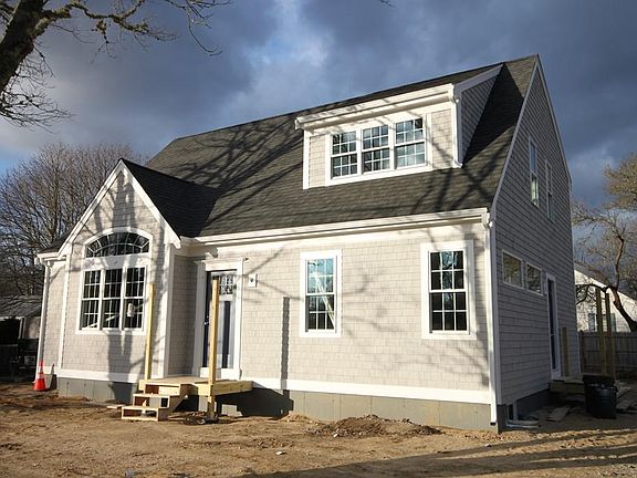 Falmouth/Davisville: Brand new Contemporary Cape south of Route 28. 4 bedrooms and two full baths. Large open floor plan with hardwood flooring throughout! Gorgeous oversized living-room with cathedral ceiling with an open loft above. Custom white kitchen with granite counter tops, breakfast bar, inlaid stainless sink, stainless appliances including range, dishwasher and microwave, lots of recessed lighting . Dining area with sliders to oversized deck and a double boxed out mullion bringing the outside light in. First floor bedroom and a full bath with tiled floor and a laundry closet. 2nd Floor has 3 large bedrooms, a small loft overlooking the living room and a full bath. This is a well built home with efficient gas heating and central air-conditioning. The house is sited with an excellent southern exposure and the location is fabulous. Less than a half mile to lots of shops and convenience stores. Don't wait on this one!!