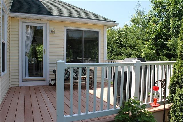 $325,000 Location and contemporary style await you in this airy, quality MUST SEE home. You'll love the lush landscaping and private natural wooded setting of this desirable end unit. A wonderful open floor plan offers a large living room dining area, kitchen and 1st floor master suite. Snuggle up in the sun room during a snow fall or a lazy summer afternoon. Gleaming hardwood floors, gas fireplace, custom window treatments, spacious upstairs bedroom, loft, closets galore and a finished bonus room perfect for you home office or hobby area all add to the wow factor seen throughout. All this in a maintenance free active adult, 55 or better, community for that extra time to enjoy golfing, walking, boating or just relaxing. Amenities include the community's Great House fitness room, well appointed kitchen, dining/living room and library. Did I mention that you're walking distance to shopping, the cinema, restaurants and waterfront parks? This home will not disappoint. All it needs is you.
