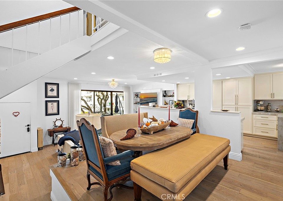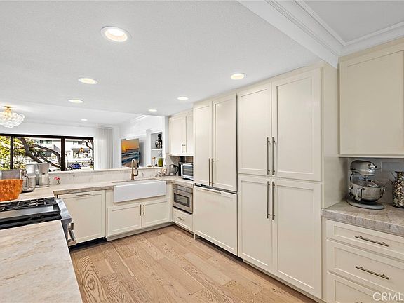 12 Encore Ct, represents one of Newport Crest’s most desirable and largest floorplans, an end-unit, 4 bedroom, 2.5 bath home with approximately 1,903 sqft, three outdoor decks, and modernized interior features. The property has been extensively redesigned throughout, with a complete kitchen rebuild, fully remodeled baths, new flooring, new paint, upgraded systems, and a finished two-car garage with significant storage. The main level offers a connected living, dining, and family room layout with vaulted ceilings, a custom gas fireplace mantle, and direct access to two separate decks. Natural light flows effortlessly throughout the home. A dedicated home-office nook sits on the first floor, providing a useful workspace separate from the primary living areas. The kitchen was rebuilt from the studs up and finished with custom cabinetry, marble counters and waterfall island, designer fixtures, and paneled Dacor appliances including a 36" French door refrigerator, six-burner gas range with griddle and professional oven, paneled dishwasher, and a new farmhouse sink. The space integrates cleanly into the dining and family room spaces, creating an efficient day-to-day workflow. Upstairs, all four bedrooms include built-in storage. The primary suite features a large walk-in closet, a fully remodeled bath with double vanities, marble counters, LED dimmable mirrors, a large soaking tub, designer filler, a rebuilt shower with body sprays and bench seating, and its own private deck with ocean-views. The guest bath has been completely redone with marble finishes, a new vanity, and a tiled shower. The powder room includes a new marble vanity and updated fixtures. The finished two-car garage includes epoxy flooring, new paint, an extra-large LG washer and dryer, 240V/30A EV charging, and access to an oversized walk-in storage area with built-in shelving. Smart-home upgrades include dimmable LED lighting, smart switches, a Nest thermostat, smart lock, and CAT-6E wiring with optical fiber delivering speeds up to 5 Gbps. A new energy-efficient water heater with recirculating pump is also installed. Newport Crest Residents have access to the community’s pool, spa, clubhouse, tennis courts, and direct access to Sunset Ridge Park. The property is close to the beach and daily conveniences, though the core value is the home itself, its layout, its storage, and the modern quality of its renovation. Redesigned for function and style, 12 Encore Ct. is truly one of a kind!