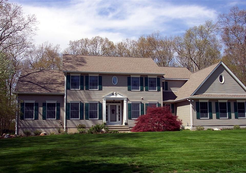 Warm and Welcome! Quality built 3600 square foot colonial delivers an open floor plan with Great Room offering cathedral ceilings and magnificant stone FP. Formal living room and dining room, first floor den, granite kitchen with sunny breakfast area, 4 bedrooms and 3 ½ baths and separate laundry . Exceptional closet space including 3 walk in closets. Spacious Master Bedroom Suite on main level offers 9 ft ceilings and master bath with whirlpool. Possible in-law or au pere suite. Fine finishing details including hardwood floors throughout, French doors plus chair rail and dental moldings. 3 car garage with entrances from main house and basement. Mechanicals include oil heat with central air and central vac.Located on a quiet cul de sac in the Parsonage Hill neighborhood this special home has been professionally landscaped, and offers a park like setting with CT fieldstone patio, firepit, patio, and custom shed.