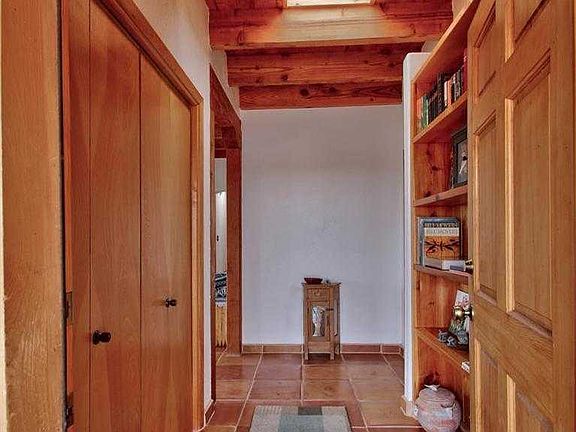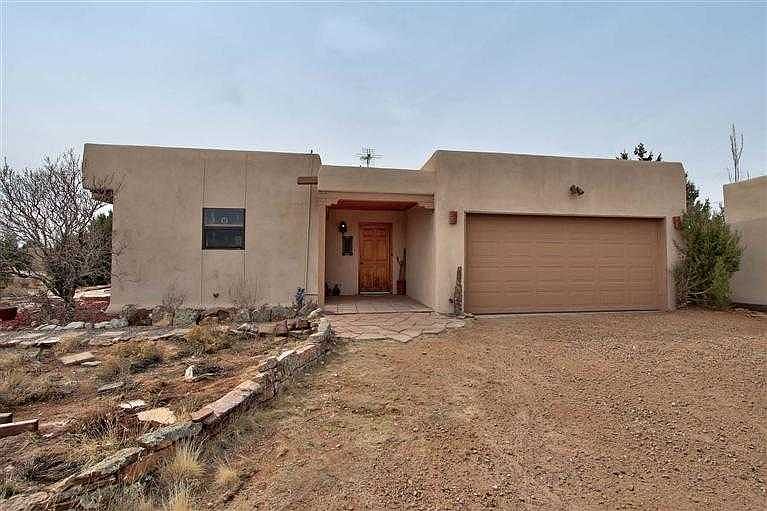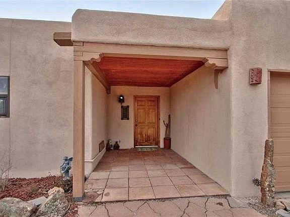 Incredible 3 bedroom 2 bathroom home, situated perfectly to take advantage of the beautiful views of the Sandias from the front and Sangre De cristos from the deck.This home offers separate entrance for guest bedroom, saltillo tile floors, adobe accents, Passive solar,beamed ceiling, finished 2 car garage AND a detached 100 sq ft office/studio! New stucco and roof in March of 2013!Eldorado ES and MS, and SFHS