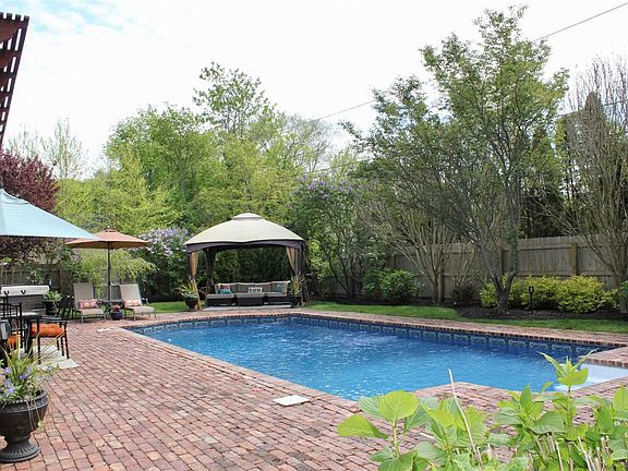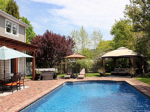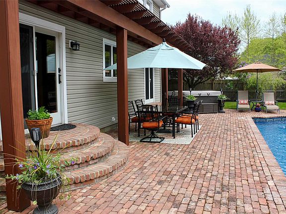 This tranquil and stunning home in the heart of Center Moriches is completely renovated for comfortable and easy living. Attention to detail is visible with a lovely porch and handcrafted mahogany front door. A coastal community on a quiet dead end street with a deeded right of way to water and access to a shared private dock are just a few of the amenities this home has to offer. Enjoy a light filled kitchen with honed black suede granite, stainless top of line appliances, recessed LED energy efficient lighting, beautiful wood burning fireplace, and hardwood flooring. Master bedroom has French doors to the backyard's heated inground pool & jacuzzi, a large vintage old brick patio, and Ipe wood pergola. Mature and professionally landscaped yard with low-voltage lighting is where entertaining and relaxation combine. This home is perfect and ideally positioned to enjoy year round living and summer months alike. Low taxes and NO flood insurance needed. A perfect retreat to call your home!