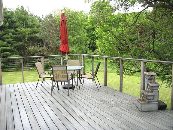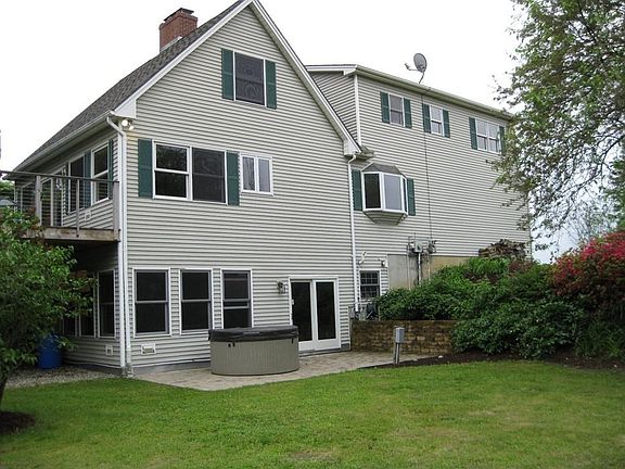 Welcoming family home at the end of a quiet cul de sac. Great location for commuting with easy access to local highways. Combination kitchen, dining and family room with fireplace/woodstove ideal for family activities or entertaining. The kitchen has been updated with refurbished cabinets, beautiful soapstone countertops and stainless appliances. Area opens out to a new Trex deck with newer style cable railings for the best view of the gardens. Main level also includes a more formal living or sitting room, home office and half bath. Upstairs is a large master bedroom suite, two other bedrooms and second full bath. Lowest walk-out level is finished and large enough for multiple uses -- second family room, work-out space, office, etc., plus a separate mechanical/laundry room with a newer super high efficiency boiler. Walk out to the stone patio and yard for a game of lawn darts or croquet.