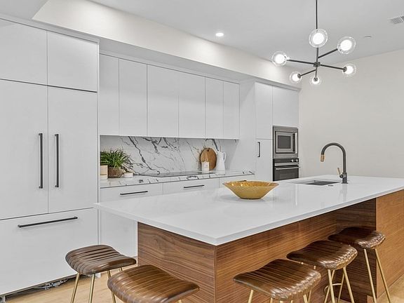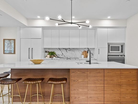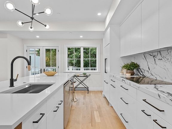 Expansive & elegant new construction in coveted Sumner Hill JP! Webb Place Dev blends a historic Victorian exterior with soft-modern interior design in this top fl 3 bed, 3 bath condo set back off the street. Open floor plan boasts treetop city views & large deck off kitchen (+roof deck rights). Designer kitchen incorporates Fisher & Paykel appliances w/ induction cooktop, custom book-matched walnut island, Kohler prolific sink, solid quartz & Neolith counters. Enjoy glimpses of city skyline, custom walk-in closet, soothing bath w/ double vanity & Grohe rain shower in primary suite. Finishes including white oak hardwoods, matte black hardware, gorgeous bath tile & statement foyer chandelier make this unit a showstopper. Plentiful + thoughtful closets, hi efficiency heat pump technology for heat/H2O, 9’ ceilings, garage parking, elec car ready + LG wash tower laundry. Prof managed w/ shared yard, package room, prvt storage & 1 yr warranty. Mins to Centre St, Arboretum, Pond, parks + T!