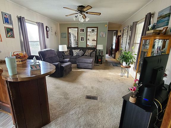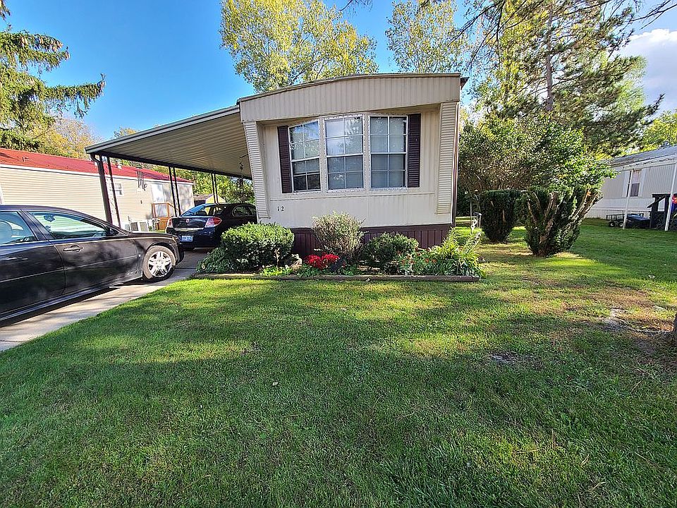 Must be approved to live in the park ($35 application fee). $458 monthly lot rent includes: trash, water and sewage. Home comes with all appliances including Washer/Dryer. Window blinds also included. Hot water heater was replaced in 2019, A/C replaced in 2018, furnace 2012. Storage shed on lot, also comes with the Home. Kept up nice and updated. You would be responsible for your own lawn care. The park plows the main drives. There is a dumpster on site for trash removal. bedroom one: 11x12 feet bedroom two: 12x11 feet two full bathrooms, one with a garden tub and shower combination. **Home cannot be moved!!**