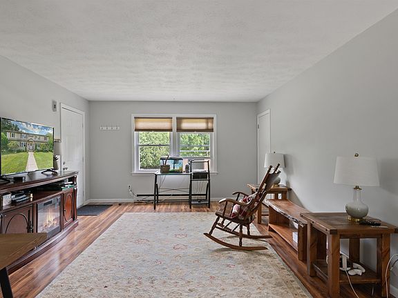 Welcome to your new home! This second-floor END unit is located at the very end of a small development and overlooks beautiful woods. One dog or cat is allowed! It may be purchased by an investor as a rental but also makes a great owner-occupied home. Improvements over the last few years include a new vinyl floor in the kitchen/living room, new refrigerator, removal of wallpaper with fresh new paint, new medicine cabinet, and pedestal sink in the bath. The private basement offers laundry with washer & dryer and exceptional storage space - uncommon in condos of this size or price! Recent vinyl windows are energy efficient and meet current fire/safety codes. New ceiling fans, and newer hot water heater, washer, and dryer. Well located with a country feel, but minutes to downtown amenities in Milton and access to I-89 Exit 17.