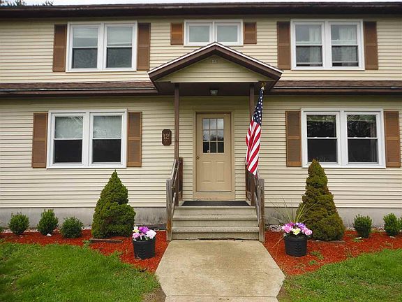 This second floor END unit is located at the very end of this small development, and overlooks beautiful woods. One DOG or cat is allowed! May be purchased by an investor as rental, but makes a great owner occupied home. Improvements in the last few years include a new vinyl floor in the kitchen/living room, new refrigerator, removal of wallpaper and fresh new paint, new medicine cabinet and pedestal sink in bath. In the basement, new sheetrock was hung in the huge workshop/storage/laundry room, which is private to this unit, and provides exceptional storage uncommon in any condo of this size or price! Recent vinyl windows are energy efficient, and meet current fire/safety code. Washer and dryer is included. Well located with a country feel, but minutes to downtown amenities in Milton, and access to I-89 Exit 17.