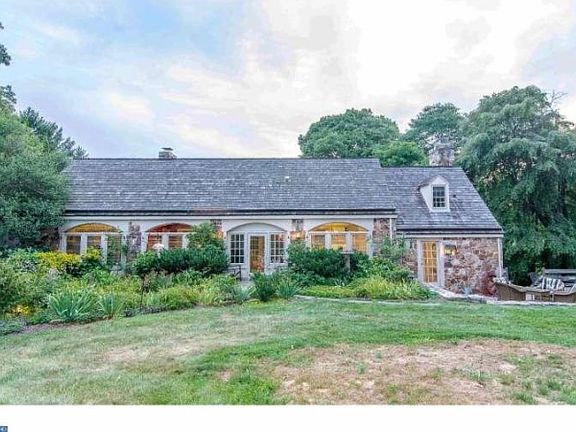 This unique property has to be seen to be appreciated. It was built as the Carriage house/ garage for the DuPont estate located next door. The architect was Brognard Okie and his hallmark woodwork and attention to detail and quality materials is evident throughout. The home has been tastefully updated while maintaining the original charm and character. Situated on 7 absolutely beautiful acres, it could not have been sited better. The upper four acres afford views almost to Philadelphia. The lower acres boasts a pond for fishing and boating. There is a detached two story garage/barn. The plantings have been selected with care and are a beautiful visual accent to this lovely stone home. The Main level is where you'll find an entry foyer, new kitchen, formal dining room and large open living room that is anchored by a beautiful stone fireplace and beamed ceilings. There is a quaint office alcove as you enter the Main Suite with full bath, high ceilings, French door to deck. There is also another room on this floor presently used as a den that could easily be a guest bedroom, along with another full bath and access to the stone patio. The Upper level is a storybook room with dormers and alcoves and used as an overflow bedroom. The lower level is actually full ground level in the front with three beautiful French doors that bathe the space in natural sunlight. Here you will find the radiant floor heated Great room with a gas fireplace and walls of bookshelves, two offices, laundry room, a bedroom with separate entrance to outside, full bath and open spaces for whatever use you may have. There is an unfinished basement as well. The garage is detached, quite large with a second story and you could easily store 3-4 vehicles here. Its hard to describe the feeling you get when sitting on the porch overlooking the grounds, or on the deck overlooking the pond, but it is quite magical. Sunsets are spectacular.