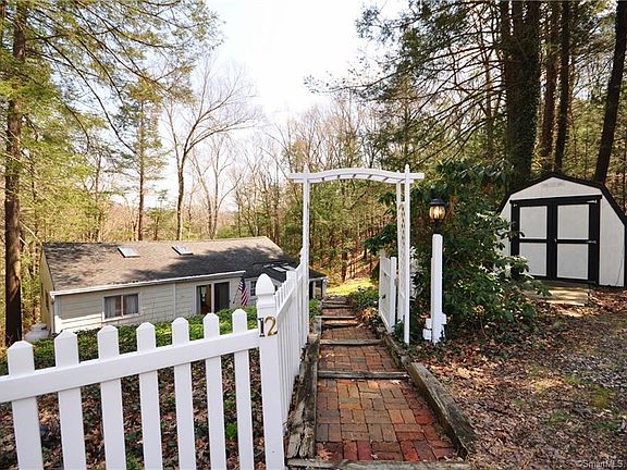 Can you imagine having a retreat in the country that feels like an inviting vacation home yet serves as your daily humble abode? If you answered yes, envision yourself here. Feel the warmth & charm that this home exudes. Why rent when this ranch is easy to warm up to & can be the perfect starter home or cozy getaway. Offering 2/3 bedrooms, (one bedrm can be used as an office/den), wideboard hardwd flrs & vaulted pine ceilings, this is not your cookie cutter ranch. The Fmly Rm embraces you & sets the mood with the remote controlled cast iron warming stove (propane fired). New appliances adorn the kitchen. Gleaming thick lustrous wood counters & center island. Vaulted ceilings w skylights allow natural light to filter thru. The kitchen opens to the welcoming skylit dining area & fmly rm with access to the deck entry. A Sizable full bath offers a bathtub/shower combo. New sliders. Enjoy lounging & dining on the outdoor deck while enjoying the sweeping views of the grounds while the soft sound of cascading water glides along a brook. A meandering stone terraced path leads to the white arbor entry & picket fence. Private driveway flanked by 2 brick pillars with ample area for multiple car parking. Storage shed. Escape, unwind & soak up all that mother nature offers in this serene & peaceful setting. Close to Treadwell Park, Exit 10, 3 minutes to the elementary school & town center where you can enjoy dining, shopping, holiday strolls & the Pootatuck Duck Race Festival. Sold"As-Is"