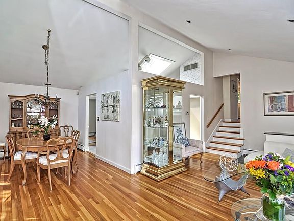 Move right in to this sparkling contemporary home in one of Needham's desirable cul-de-sac neighborhoods. Featuring vaulted living room, dining room and kitchen. Many updates including a family room addition, newer roof and replacement windows, central air, irrigation system, security system, hardwood and tile flooring throughout. Updated baths and eat in kitchen with skylight. Two fireplaces, dedicated laundry room. Dine on the patio or tend to your garden in this sunny level backyard. Finished lower level allows for many possibilities including guest bedroom, home office, playroom, in-law or au pair suite. Basement and shed storage aplenty. Great commuter location. Newer refrig, washer and dryer included. Able to close quickly! OH Thurs 5/11 5pm to 7pm, Fri 5/12 5pm to 7pm, Sat 5/13 1pm to 3pm, Sun 5/14 1pm to 3pm.