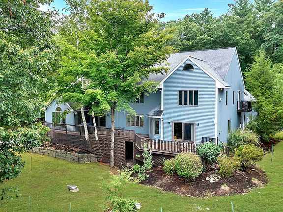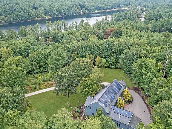 Back on market due to financing! Their loss is your gain - Custom Contemporary home nestled on 4 private acres! Hardwood floors throughout, high ceilings, recessed lighting, generous closets, and TESLA solar array. Flexible floorplan with 7 rooms upstairs that could be used as bedrooms or offices, plus multiple lofts and play space on the third level with spiral staircase and ladders. Spacious kitchen featuring a double oven, gas Thermador cooktop, granite countertops, and extensive cabinetry. Oversized family room with gas fireplace, living room with cathedral ceilings and skylights, multiple sliders to the deck. Two staircases to the 2nd level, one to an office with separate entrance. The gracious primary bedroom suite features a vaulted ceiling and sleeping/work loft, gas fireplace and ensuite bath with balcony. 1GB Fiber run to the home last year, hardwired LAN to many rooms, underground utilities. Bring your car collection with 7+ garage bays. Walk-out lower level. Top-ranked Hollis Brookline schools, right across from Silver Lake for swimming, hiking, trails.