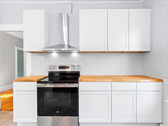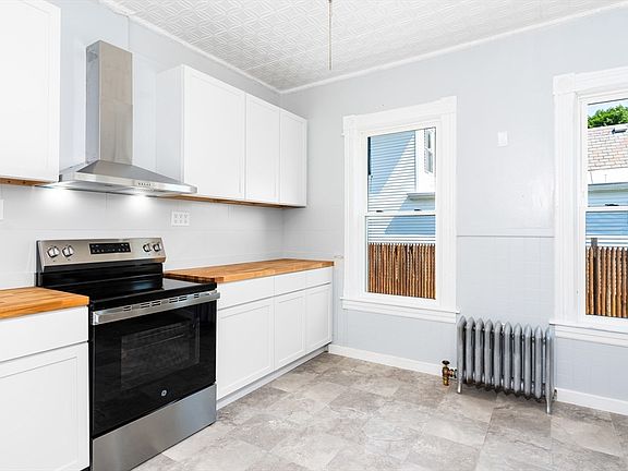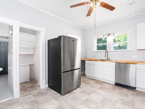Welcome to your dream home! This freshly renovated 4 bedroom, 1.5 bathroom home has everything you've been looking for. From modern amenities to ample outdoor space, this home offers the perfect combination of style and comfort. The 1st-floor features a large dining room, a spacious kitchen, a full bathroom, a convenient laundry room, a cozy living room and one of the 4 bedrooms. The kitchen is a chef's delight with brand new cabinets, stylish butcher block countertops, new stainless steel appliances and a handy pantry for extra storage. The kitchen and living room are enhanced with gorgeous tin ceilings, adding a touch of vintage charm. The stunning wood floors throughout the main level have been freshly refinished, adding warmth and elegance to the home. Upstairs, you'll find 3 large bedrooms, a multipurpose room and a convenient 1/2 bathroom. The huge, flat backyard is perfect for outdoor activities, gardening or simply relaxing. 2 garages and 2 driveways for added convenience!