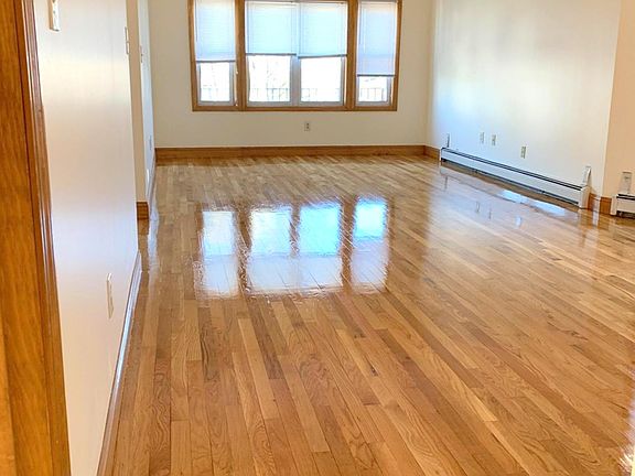 Sunny top floor of a two unit house with refinished hardwood floors. Big open living and dining room with lots of natural light and bay windows. The kitchen has plenty of cabinet and counter space with room for a table. There is a refrigerator, gas stove, dishwasher & disposal. Full bathroom with tub. There are front and back porches just for this unit. Free, dedicated laundry & storage in the basement Parking for one or two cars is included. Cat negotiable. Convenient to the Gilman Square Green Line T + bus routes connecting to the Red & Orange lines. Available June 1. One month broker fee. Owner pays water & sewer. Tenant pays gas & electricity. One month broker fee.