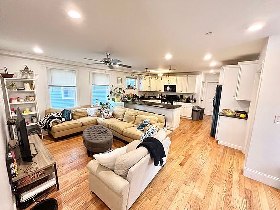 5 bed 2.5 bath First floor and basement duplex. Large open living room / kitchen area with all hardwood floors, central air conditioning, two and a half bathrooms. Has additional den/office room in basement with laundry in unit Includes two off street parking spaces, one covered and one uncovered (outdoor). Built in 2016.