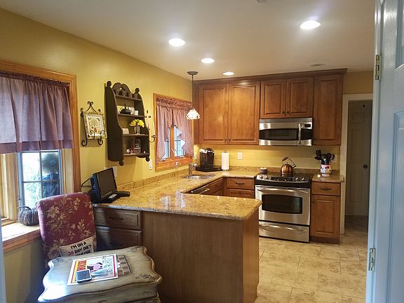 - Fireplace features: wood stove