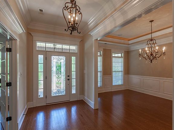 - FOYER DESC: 10? + Ceiling, Wood Floor, Crown Mold