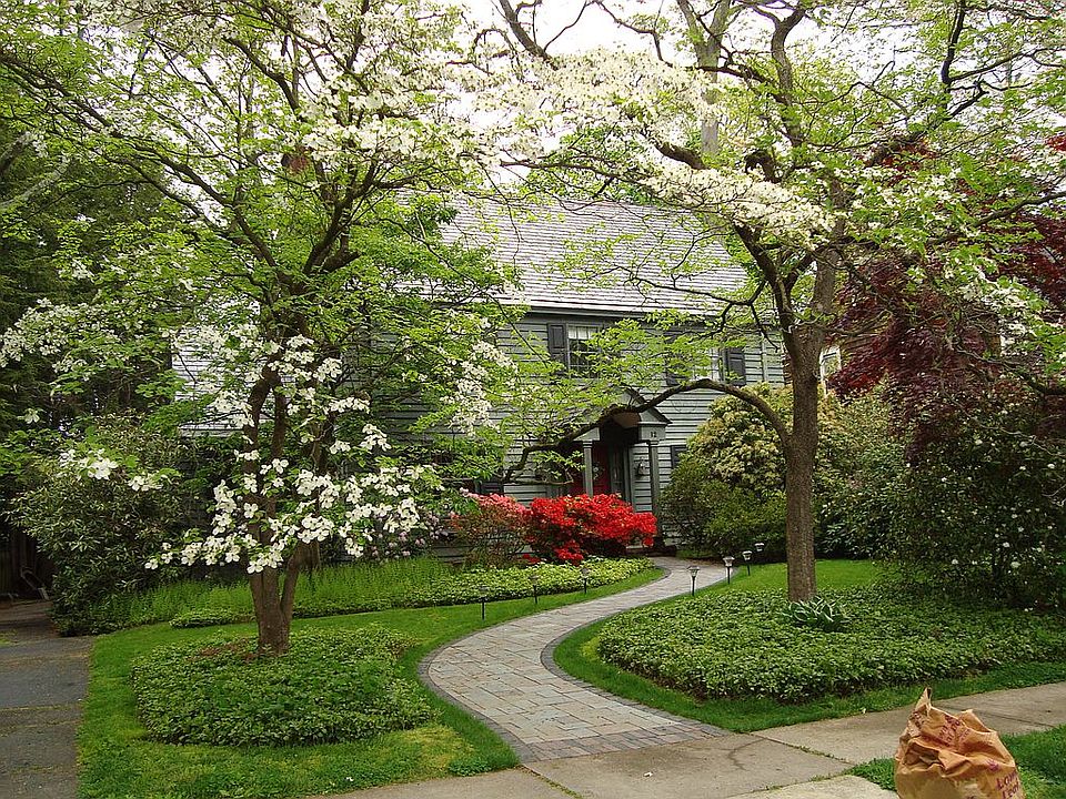 Two and a half story colonial with slate roof, palladium windows, 4 bedrooms, 3.5 baths, hardwood floors on 1st and 2nd level, all new stainless steel appliances, crown moldings, butler's pantry, dining room with palladium style corner hutches, new paver walkway