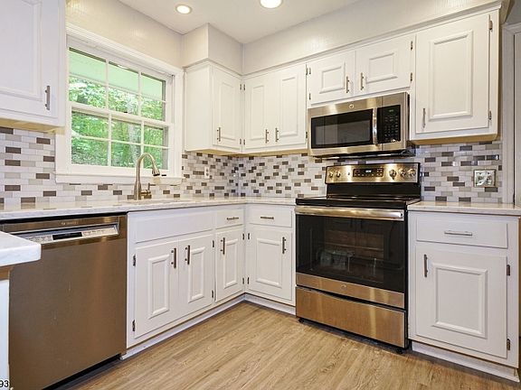 Welcome to this 4 bedroom ranch, located in a cul-de-sac, in a neighborhood setting with public water & public sewer! This home boasts refinished hardwood floors, fresh paint in most of the rooms, anda beautifully updated eat in kitchen w/ quartz countertops, tile backsplash, newer SS appliances, new flooring, and recessed lighting. Other updates all within the past 10 years include central air, roof, deck, painted exterior, and new insulated garage doors. The Primary bedroom includes a full bath w/ stall shower and hardwood floors. 3 other bedrooms on the main level also have hardwood floors. The large living room is open to the dining room, and also has access to the deck, perfect for entertaining. The lower level features a large rec room, laundry room, and the 2 car garage. Do not pass this one up!