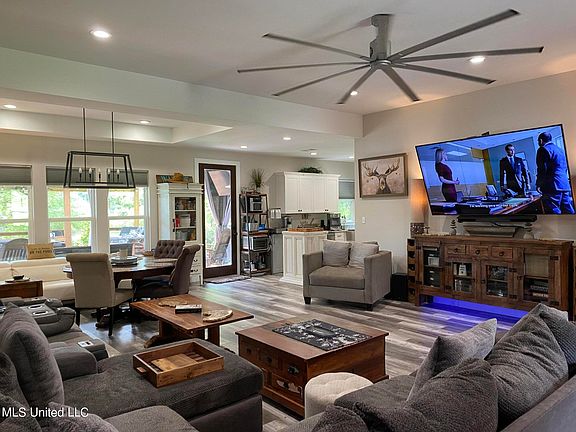 Garage floor has the ninja concrete coating and is used for additional living and recreational room. It has a mini split system so is heated and cooled. Garage can easily still be used for car storage. It also offers some very nice shelving for storage. Primary bedroom also has a mini split system so it can be kept quite chilly if desired. Ninja concrete coating on front porch and rear porches as well. Take a Look! You'll be hooked!