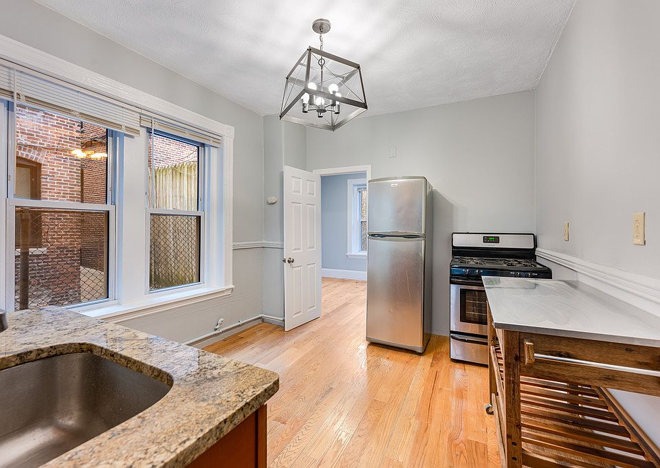 Well-appointed kitchenInviting living spaceWarm hardwood floorsModern appliancesAmple cabinet spaceAbundant natural light