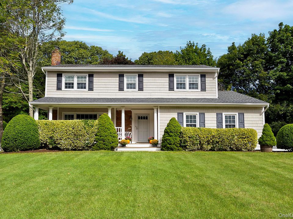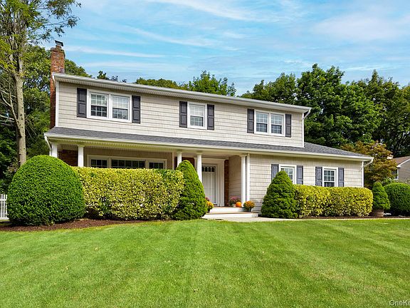 A lovely, spacious colonial tucked in at the end of a secluded court, minutes from Huntington village. The home features all large rooms. Welcoming front porch, large formal living room with expansive front windows fill the home with natural light. The formal dining room off the big bright eat in kitchen; lofted breakfast area surrounded by windows overlooking the backyard, and sliders out to the deck. The large den/great room has a wood-burning fireplace, tray ceiling and 2 skylights; a wonderful space for family gatherings. Upstairs the primary bedroom has an ensuite bath and walk-in closet. There are also 3 more bedrooms and a family bath. Partially finished basement, 2 car garage enters in to the home. Private back yard. Hardwood floors up and down, crown moldings, gas fuel, CAC. Updated Heating and CAC System, Home Generator. Newer Windows, Siding & Roof. Enjoy everything Huntington has to offer: great parks and beaches, also endless shopping & dining options, and the LIRR station is nearby. Great location and potential. A forever home to plant roots and grow dreams.