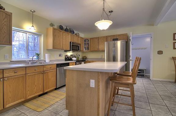 Gorgeous Updated Colonial featuring 1st floor w/ spacious kitchen, stainless steel appliances, tile floor, new light fixtures, new garbage disposal & large island w/ seating open to formal dining room. Great living room, office nook w/ hardwood floor & slider to deck. Lovely tiled mudroom, nice half bath & tiled entry w/ coat closet. 2nd floor features fabulous front-to-back master w/ walk-in closet, 2 more generously sized bedrooms & big family bath. Fully finished daylight basement includes huge family room w/ gas stove, office w/ laminate flooring, laundry & storage room plumbed for bath. Plus newer carpet, fresh paint, vinyl siding, energy efficient natural gas heat , Nest thermostat, new central A/C, new HW heater, public water & sewer, farmers porch, paved driveway, new bulkhead, direct entry auto open 2 car garage, fully fenced backyard w/ brick patio, fire pit, deck & shed all on beautifully landscaped .30 acre lot on quiet street in desirable neighborhood.