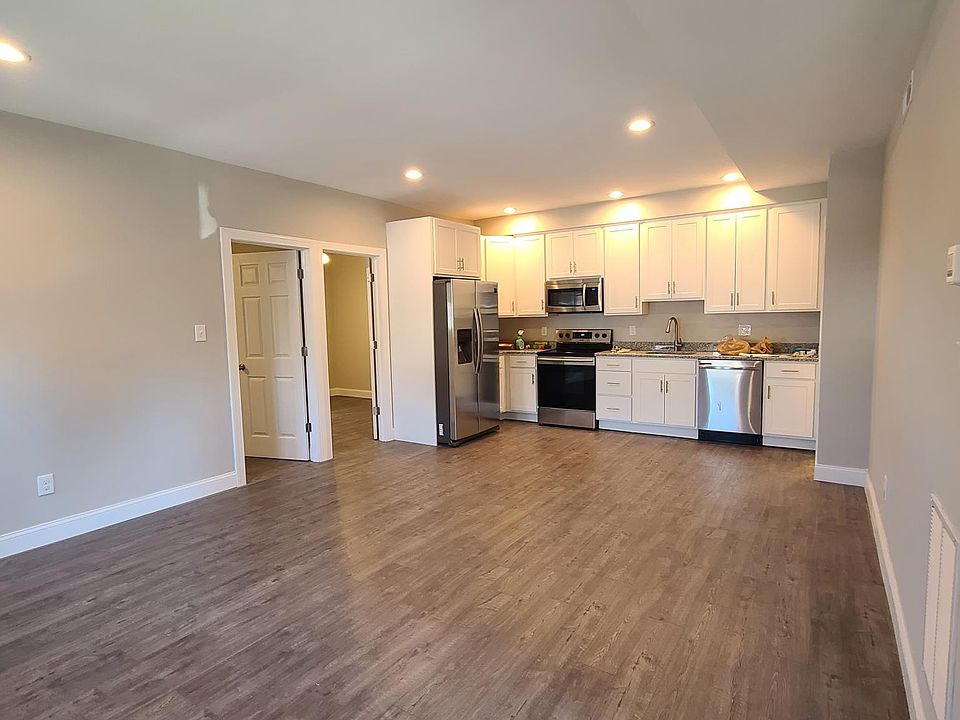 Fully renovated 2-bedroom luxury apartment! Spacious open floor plan with all new Kitchen Cabinets, Granite Counter-tops, Stainless Steel appliances, Central Heating and Air, and more! This apartment also has 600 square feet of extra storage space in the basement!