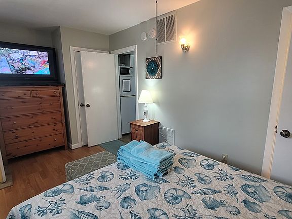 WINTER RENTAL $1550/MONTH + SECURITY/RENTAL APP/& LEASE. This Fully furnished 1 bedroom unit, located on the 2nd floor, has everything you need for a home away from home stay. Just 1/2 block from the Sand. All utilities/wI-FI included. Stove, Refrigerator, Microwave, Toaster,Coffee Pot and On-site coin op Laundry, Assigned Parking for 1 car in our compact carport. Showings must be limited to times when not currently booked. Call for Availability. Available for Winter Rental From September - May 31- Requires Application $49/non refundable for Credit/Background/Reference and rental agreement. No Animals, No Smoking. For Winter Rentals. All utilities are included, plus wi-fi. 2 person max. All adults must complete application process. Lease Term expires May 31, 2025 Available from September 2025. if renting during 2025 Summer season, 3 night minumum paid up front. Summer Rental of $230/night inlcudes fees except tax which is 8.5%.