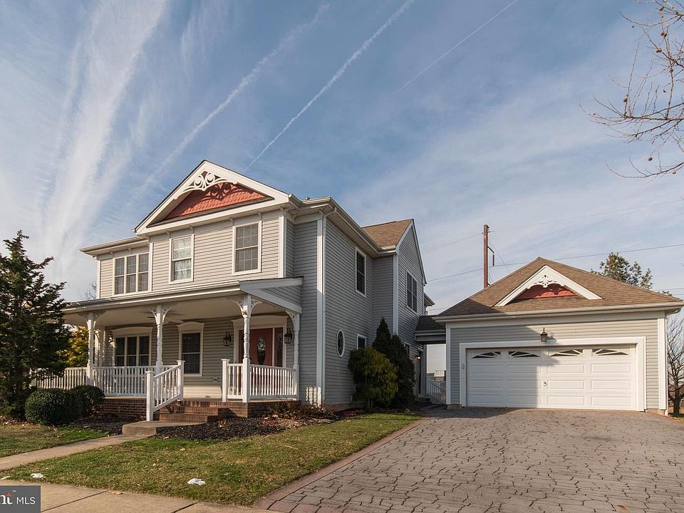Absolutely gorgeous "Ashley Lynn" model in Victoria Crossing on half acre lot. Cul-de-sac location in Ivyland Boro. Built in 2004. Take a step back in time as you enter this lovely Victorian home with huge old fashioned front porch & detached 2 car garage, enormous rear deck & patio. 4 bedrooms and 2 1/2 bathrooms. Home is 2,807 sq. ft. plus another 1440 sq. ft. in basement! Formal foyer entry with window seat flanked by 2 coat closets. Hardwood floors throughout, dining room, living room, kitchen & breakfast room. Enjoy entertaining in your gorgeous kitchen with custom glazed cabinetry & center island & stunning dining room with it's dramatic vaulted ceiling. Family room with gas fireplace! Beakfast room has sliding door to large 32x16 deck, great for entertaing! First floor powder room has been remodeled with heirloom vanity and matching fixtures. Upstairs you will find a fantastic owner's suite with 2 walk-in closets, CT bath with double sinks & jetted tub, 3 additional generous sized bedrooms with ample closet space. 2nd floor has all new carpet! Full bathroom and laundry complete the upper level. This wonderful home has upgraded dual zoned heating & A/C. Both heating units just replaced!! 5 year warranty to new owner. 9 ft. ceilings on 1st floor & basement. Basement has rough-in for additional full bathroom. Walk out basement is ready to be finished the way you want! Anderson windows & patio doors. Home was just freshly painted! Oversized 2 car garage. No association and fees to worry about! Shows like a model! All of this and so much more with proximity to restaurants, shopping and major routes!