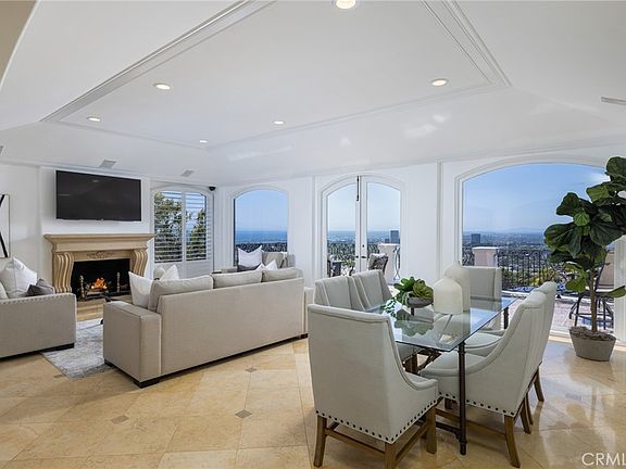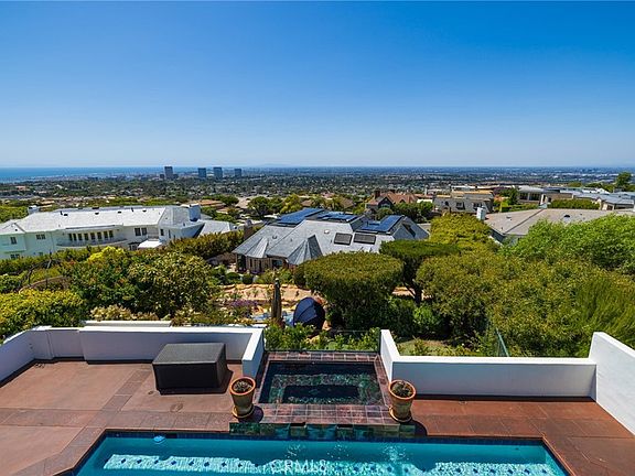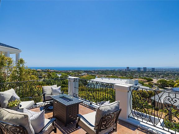 Enveloped in the allure of boundless ocean vistas, twinkling city lights, and majestic mountains, this immaculate home is the epitome of sophistication and comfort. Experience the embodiment of sophistication with this elegant home, nestled in the guard-gated community of Harbor Ridge, renowned for its breathtaking panoramic views. This magnificent residence serves as a private retreat, offering ocean, city light, and mountain vistas visible from nearly every room. Effortlessly indulge in luxury in this home, graced with fine limestone and hardwood floors, a dedicated home office, and an impressive 900-bottle wine cellar. The residence features a master suite on the main level with commanding ocean views and resort-like grounds, fostering a sense of refined living. The heart of the home, an open-concept kitchen, is a testament to tasteful design featuring a spacious center island, furniture-grade cabinetry, premium stone countertops, and high-end appliances, including a built-in refrigerator and a Wolf gas range. The lower level extends to an expansive, meticulously designed outdoor space. Embrace the California sun in the oversized pool or find solace in the shade beneath the extensive covered patio with automated custom shades and accent lighting. This level boasts three secondary bedrooms, each with its own en-suite bathroom, making it perfect for hosting guests. Unwind in the master suite, a haven in itself, with vaulted ceilings, a private ocean-view balcony, a stacked stone fireplace, and a spa-like bathroom. Beyond the opulent 5,300 square foot interior are the alluring outdoor living spaces. The piece de resistance is the hot tub, offering uninterrupted ocean views, shimmering city lights, and verdant hillsides. Additional highlights include a main floor guest suite, an outdoor shower, custom Walker Zanger stonework, an advanced security system, a paved stone driveway, and an attached three-car garage. All of this, combined with proximity to pristine beaches, and the chic shopping/dining choices at Fashion Island, makes this ocean view home an unparalleled offering, a truly remarkable legacy property.