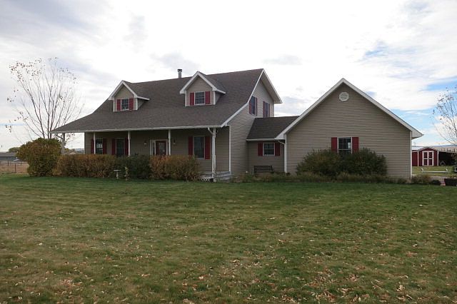 This beautiful 2 story on over 2.5 irrigated acres features 4 bedrooms, 3 baths, and STYLE!! Gorgeous, solid-built house has main level 10' ceilings and oak hardwood floors, modern kitchen with white cabinets, spacious laundry/mud room, solid 6 panel doors throughout, and more! HUGE front yard and covered front porch great for views. Pasture cross-fenced for horses.