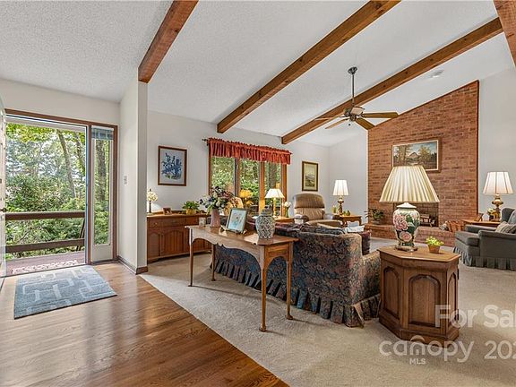 Tucked behind the landscaping you will find a hidden gem that exudes the feeling of a mountain home. From the moment you walk in off the front porch and see the large wood burning fireplace, wood beams and built in shelving in the living room you will feel right at home. The dining room is centrally located in the home and looks out on the deck and level backyard. The main level offers three large bedrooms. The primary suite has a large walk-in closet and the bath provides a dressing area. Head downstairs to the basement where there is a large den with a rock fireplace and gas logs. The laundry is also located downstairs and there is an additional bathroom. The 2 car garage has workshop space. Close to Glen Arden and TC Roberson. Great location for all the Arden/South Asheville has to offer including breweries, shopping, dining and proximity to the airport.. The house is being sold As-Is and the seller is offering a home warranty to the buyers.
