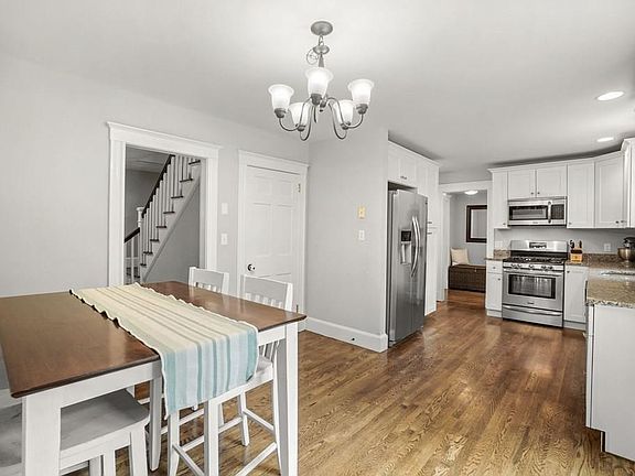 Move right in to this stunning modern colonial that has everything today's buyer is looking for! Extensively renovated in 2015, this lovely 4 bed, 2.5 bath sports a huge eat-in kitchen w/stainless steel appliances, granite counters & white cabinetry. Relax by the marbled wood-burning fireplace, or host friends & family in the expansive living room w/gorgeous restored hardwood flooring. Head in to the enormous first floor master bedroom w/double closets & a beautiful en-suite master bath w/glass shower! Upstairs you will find three more bedrooms, all w/hardwood floors, as well as another full bath. The large unfinished basement is great for storage. Looking for incredible outdoor space? Look no further! Here, you'll find a farmer's porch on the front of the house & a composite deck out back, where you can enjoy a perfect fenced in backyard for summer BBQ's! Central air, propane gas heat, 1st floor laundry & location has easy access to 93, & 2 commuter rail stops! This is a must see!