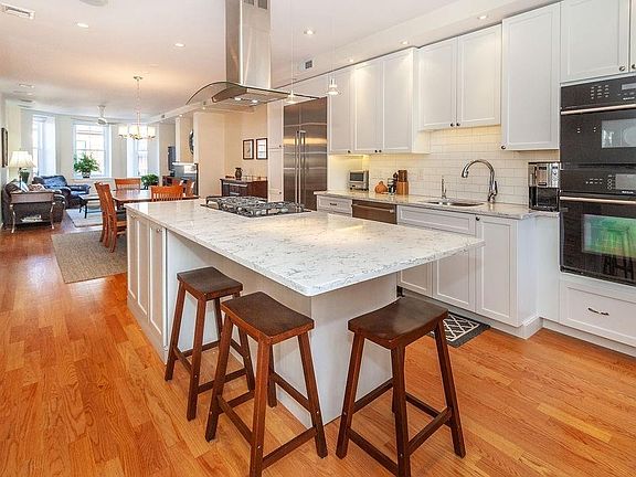 Outstanding opportunity to own this penthouse condo, which features two levels of living and an expansive roof deck with breathtaking city views. The main level has an open floor plan with gleaming hardwood floors, exposed brick, gas fireplace, half bath, office, custom audio and a fabulous architectural staircase. The large gourmet kitchen was replaced in 2018 and features custom cabinetry, quartz counters and Sub Zero refrigerator. The second level provides a large master suite with vaulted and paneled ceilings, transom windows, walk-in closet and a gorgeous full with custom stone counters and heated flooring. There's another full bath with detailed tile work and heated floors, along with a large second bedroom. Even the hall way features a built-in wine fridge leading to the truly spectacular roof deck to enjoy Boston's beautiful skyline. Additional 2018 exterior upgrades include a new rubber roof, as well as a new composite roof deck and hatch.