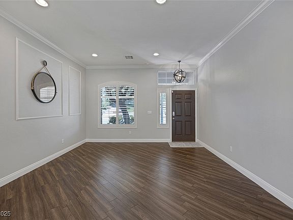 Stunning Green Valley Ranch Home – Prime Location Near The District! Nestled in the heart of highly sought-after Green Valley Ranch, just minutes from The District's premier shopping, dining, parks, and convenient 215 freeway access. This beautifully upgraded residence combines style, comfort, and functionality in one perfect package. Step inside to find gorgeous wood-look porcelain tile flooring, elegant crown molding throughout, and custom cabinetry that adds a touch of sophistication to every room. The spacious master bath has been tastefully renovated, offering a spa-like retreat in the comfort of your own home. Plantation shutters throughout the home provide both charm and energy efficiency. Step outside to your own private oasis—complete with a sparkling pool, covered patio, and outdoor TV—ideal for entertaining or simply unwinding during warm summer evenings. Don’t miss this rare opportunity to own a move-in-ready home in one of Henderson’s most desirable neighborhoods!