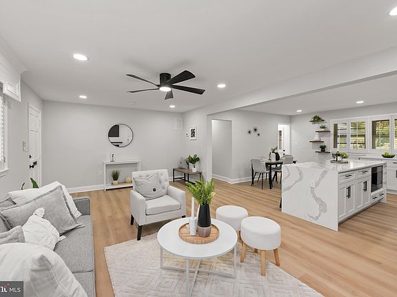 Welcome home to the beautiful 12 Gorsuch Rd! 1 year home warranty included! Prepare to be wowed by the modern and luxurious finishes. This updated 4-bedroom, 2 full-bathroom home offers a prime location in Timonium. When you enter the home, you are greeted with an open floor plan and an abundance of natural light. The living room showcases luxurious LVP flooring, recessed lighting and a cozy wood-burning fireplace. The living room transitions seamlessly to the dining area and a modern, high-end DREAM kitchen with top-tier features such as 42-inch soft-close cabinets, new stainless-steel appliances, quartz counters, a large island cascading into a sleek waterfall design with plenty of space for entertaining, tile backsplash, and a patio door leading to an additional sunroom area. The main level also features 2 spacious bedrooms and a beautifully appointed full bathroom with upgraded tile floors, a generous double vanity, separate tub/shower, and standing shower. Just downstairs is a huge fully finished lower level with endless possibilities, featuring 2 additional bedrooms and an updated full bathroom. There is plenty of space for a home gym, office, or game room! Outside, you can enjoy the patio and landscaped backyard with mature trees, and your driveway offers plenty of parking! With its proximity to major commuter routes and shopping, this Timonium gem presents a rare opportunity for comfortable living in a prime location!