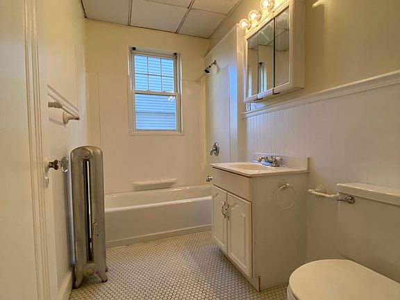 This apartment is beautiful and full of character. There is a large living room and dining room open to each other which makes it extra spacious. The trim, baseboard, molding, and French doors add lots of character to this apartment. There is a 4ft x 6ft closet in the dining room and a 5ft x 6ft mud room with cabinets, making for plenty of storage. There is plenty of room in the kitchen for a kitchen table, allowing for the dining room or living room to be used as an office/study. There is a lot of sunlight and a great breeze when the windows are open. Parking for 1 is available off-street and there is plenty of on-street parking. There is coin-op laundry available in the basement. First, last and security deposit required. Thorough screening is performed on all applicants to ensure that a safe and comfortable living environment is preserved for all residents.