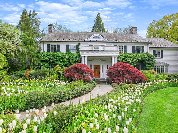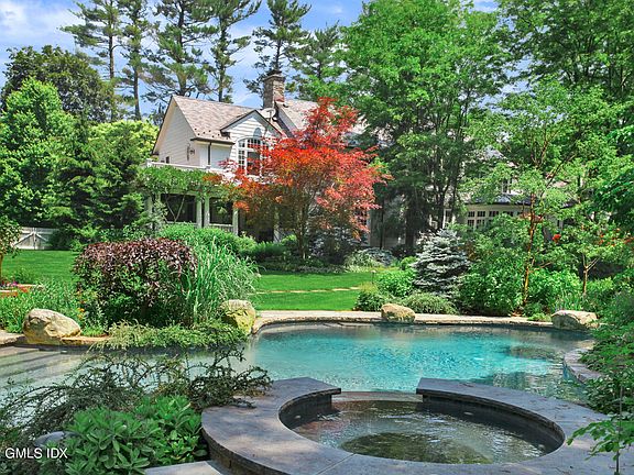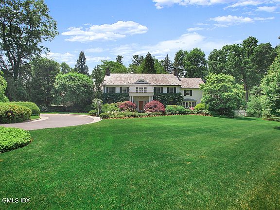 A rare mid-country compound on one of the most distinctively beautiful lanes in Greenwich. Two and a half impeccably private acres, complete with a five- bedroom, well-appointed main house, a guest house, garage apartment/home office and whimsical garden folly. Broad level lawns, magnificent perimeter trees, and enchanting perennial gardens in continuous bloom will inspire both quiet reflection and fabulous parties. The transformation of this stone and shingle 30's house by current owners creates a timeless floor plan with extra rooms on three levels to spread out. A large pool house/guest cottage has two baths, a kitchenette, and space for gym and lounge as well as overnight accommodations upstairs. There is a separate office or studio with a full bath and a balcony overlooking the grounds and gardens. The heart of the main house is the fabulous gourmet kitchen with multiple islands and adjacent large breakfast room and family room both of which open out to expansive terraces, and covered porches extending across the entire south side of the house. Five fireplaces, cozy studies, a lower-level billiard room and an amazing primary suite with the perfect closet are just some of the extraordinary features of this gracious home with beautiful entry and staircase, nicely scaled formal rooms, along with additions and enhancements that work for today's lifestyle. A flexible second floor plan has bedrooms that can be organized into suites, accommodating multi-generational living. Come and be captivated by this simply gorgeous property!