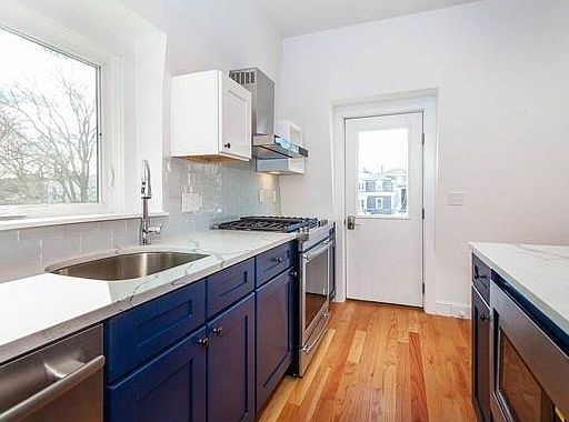 This bright, newly renovated top floor 2 bed 1 bath unit offers hardwood floors throughout, stainless steel appliances including 5 burner gas range and a wine cooler, durable quartz counter tops, full size in-unit washer/dryer, and 2 off-street parking spaces in the driveway. Convenient access to Union Square and buses to Lechmere Green Line and Assembly Square Orange Line make commuting much easier. 2 Off-Street Parking Spaces Included