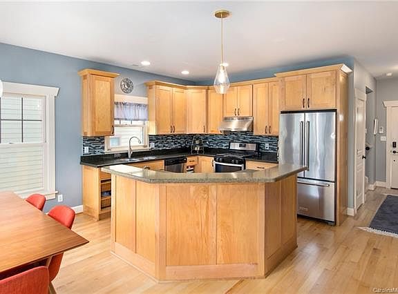 Highly desirable, walkable West Asheville home with fabulous views! Walk or bike to Downtown, West Asheville, the River Arts District, parks and greenways. This home offers desirable open concept living with modern touches throughout: 9' ceilings, large windows and maple floors grace the main living area. Cozy up to a beautiful ceramic tiled, eco-friendly, ethanol fireplace in the living room. Create memorable meals in the functionally designed kitchen which boasts a gas range, custom maple cabinets, and granite countertops. A large island with a catering sink and space for a wine fridge, and all stainless steel appliances completes your culinary experience. The home's second floor features new carpet in all three bedrooms and new tile in the bathrooms. Entertain guests on your covered front porch and expansive back deck, which are complemented by 180 degree mountain and city views. 1 mile to New Belgium Brewing. (Seller would like short term lease back option if possible).