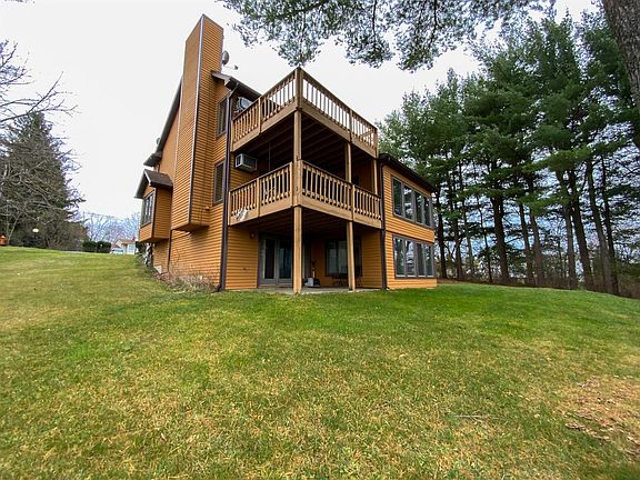 Enjoy a beautiful lake view and gorgeous sunsets in this 5 bedroom, 4 bath custom built home in Lansing. Endless possibility awaits you with a large eat in kitchen, formal dining room, and main level bedroom w/ full bath. A sun room just off the kitchen is the perfect spot to relax and enjoy the view. Upstairs welcomes a large primary bedroom w/ fireplace, bamboo floors, walk out deck & marble bathroom w/ soaking tub. An additional three bedroom, bonus room, and a full bath provide plenty of space. The fully finished walk out lower level is perfect for entertaining with a bar, sun room with hot tub, and an additional full bath. This home as plenty of natural light, space, sought after views and the opportunity to make it yours!